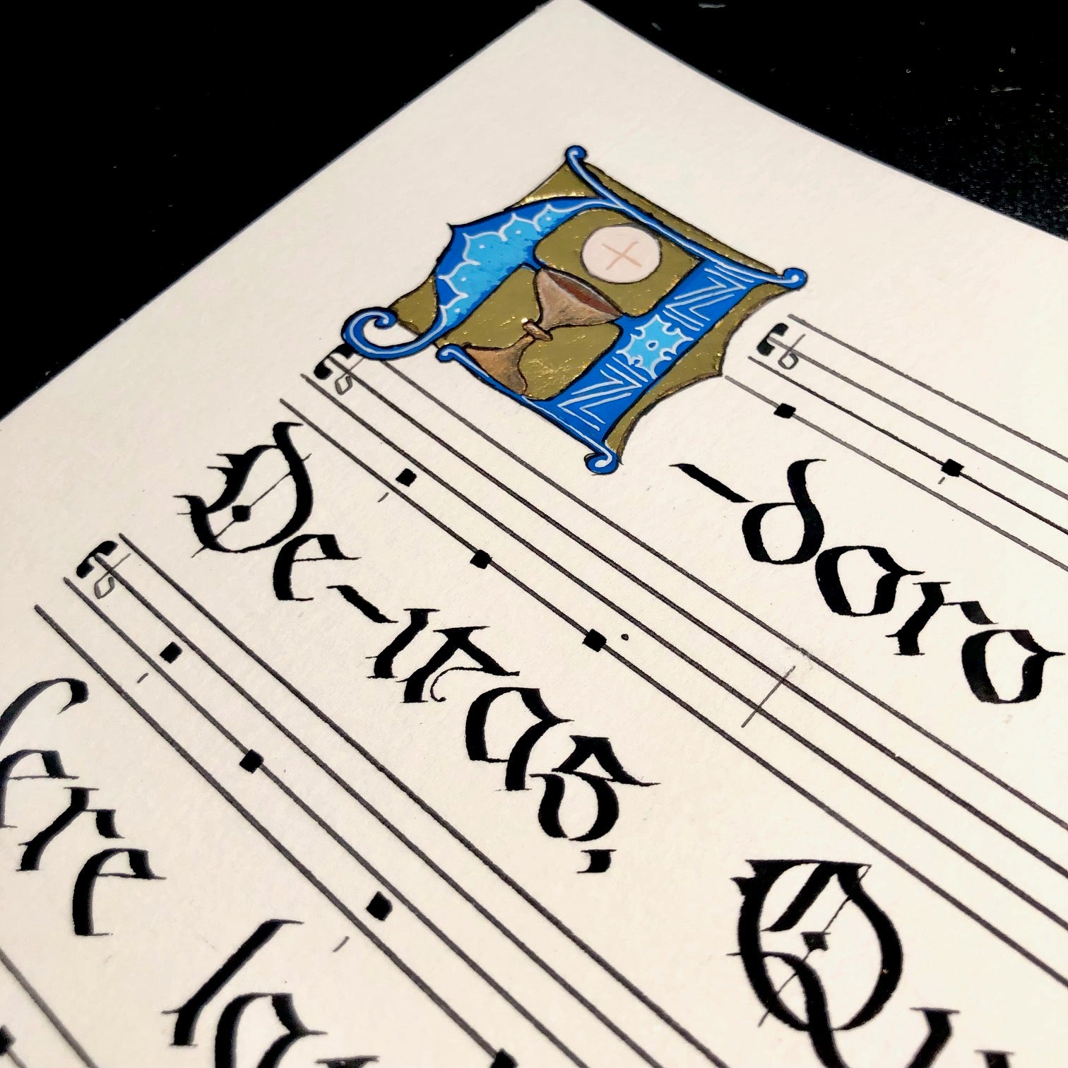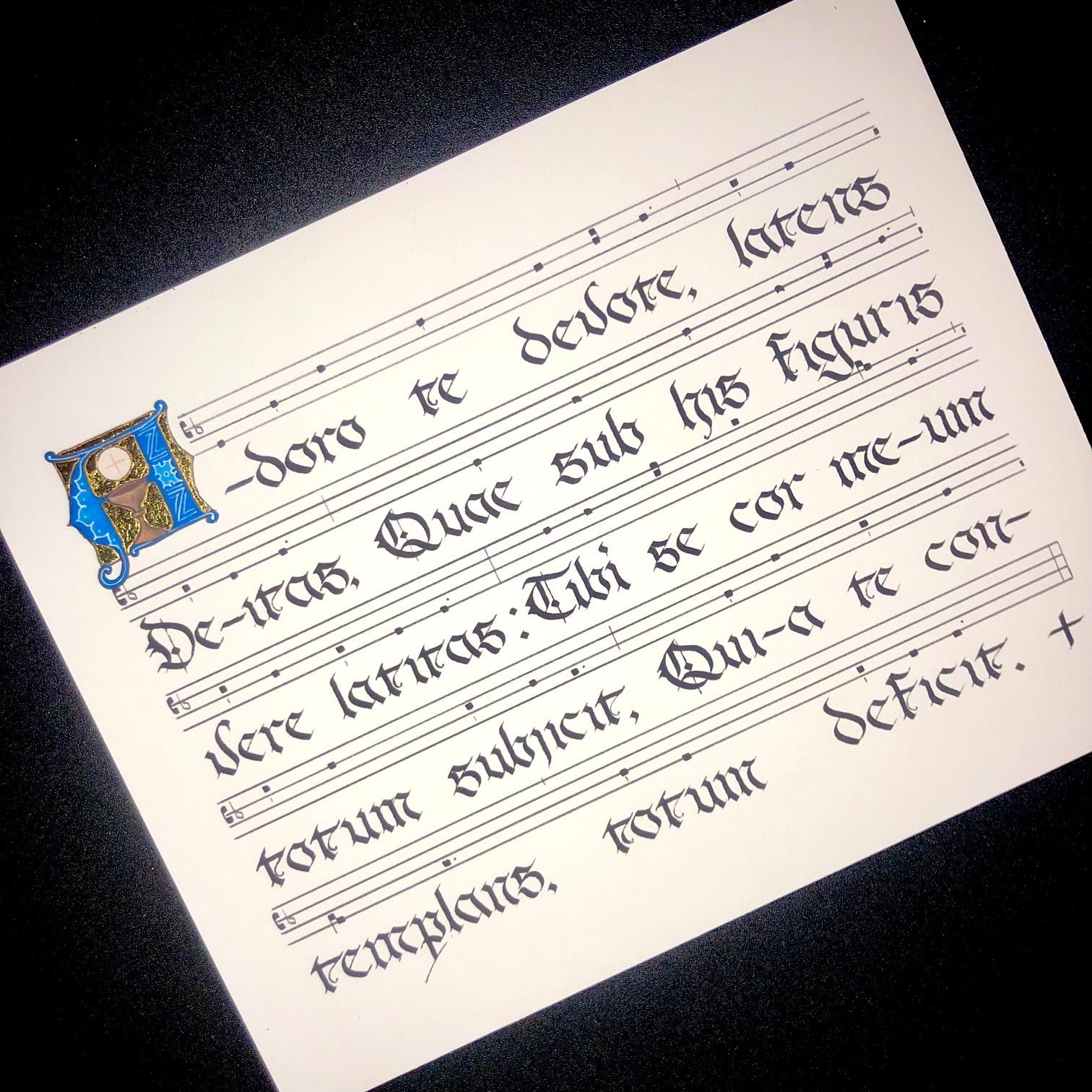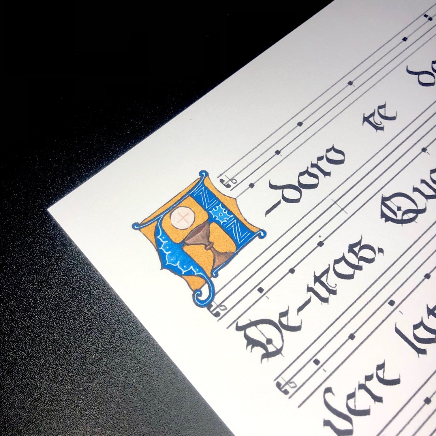 A work of art and a reverent homage to the profound devotion embedded within the words by the Angelic Doctor, St. Thomas Aquinas, this print of my 'Adoro Te Devote' illuminated Gregorian chant is an excellent addition to any home, sacristy, or choir room.