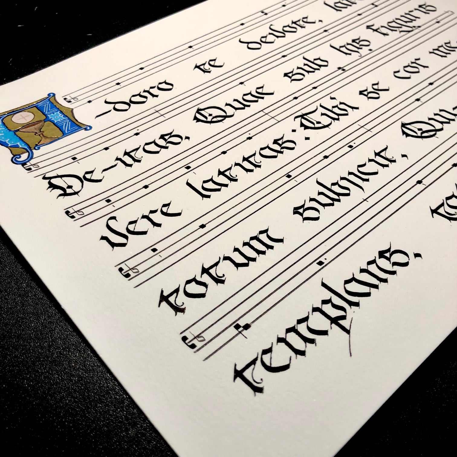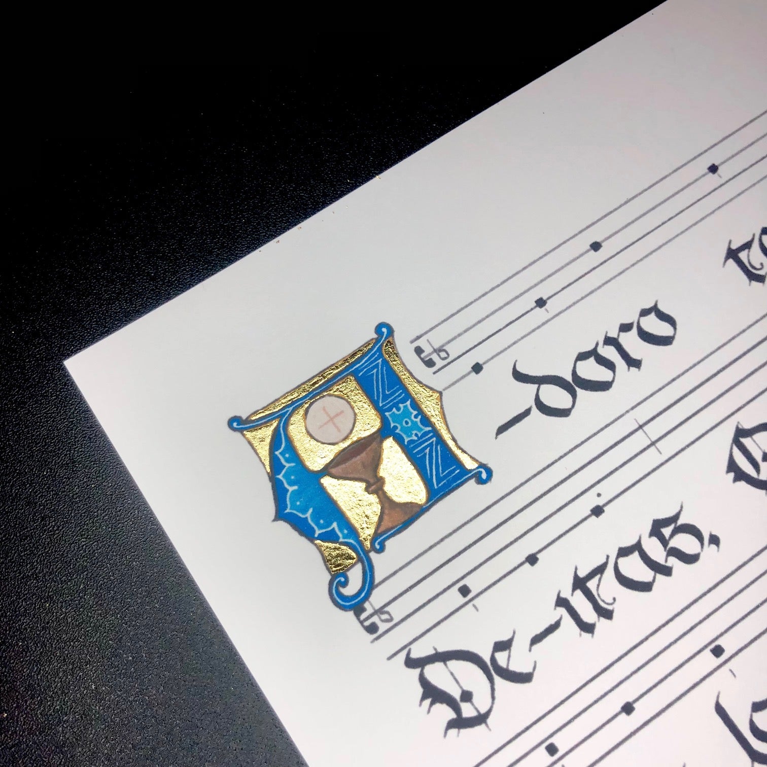 Searching for a meaningful gift? Look no further. This illuminated calligraphy print makes a heartfelt present for those who appreciate the blend of artistic craftsmanship and spiritual significance. Whether it's for a loved one, a friend, your parish priest or choir director, a First Holy Communicant, or even yourself, this piece will undoubtedly bring the readers and singers closer to God, one letter at a time.