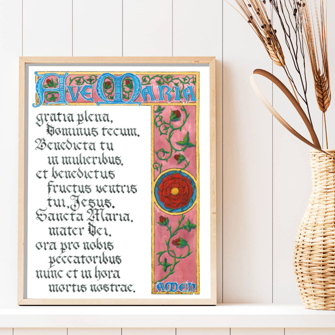 Our 2022 Ave Maria Print is a testament to the enduring power of faith and artistry. Whether adorned with gold leaf or left in its elegant simplicity, it's a masterpiece that invites you to explore the beauty of devotion.