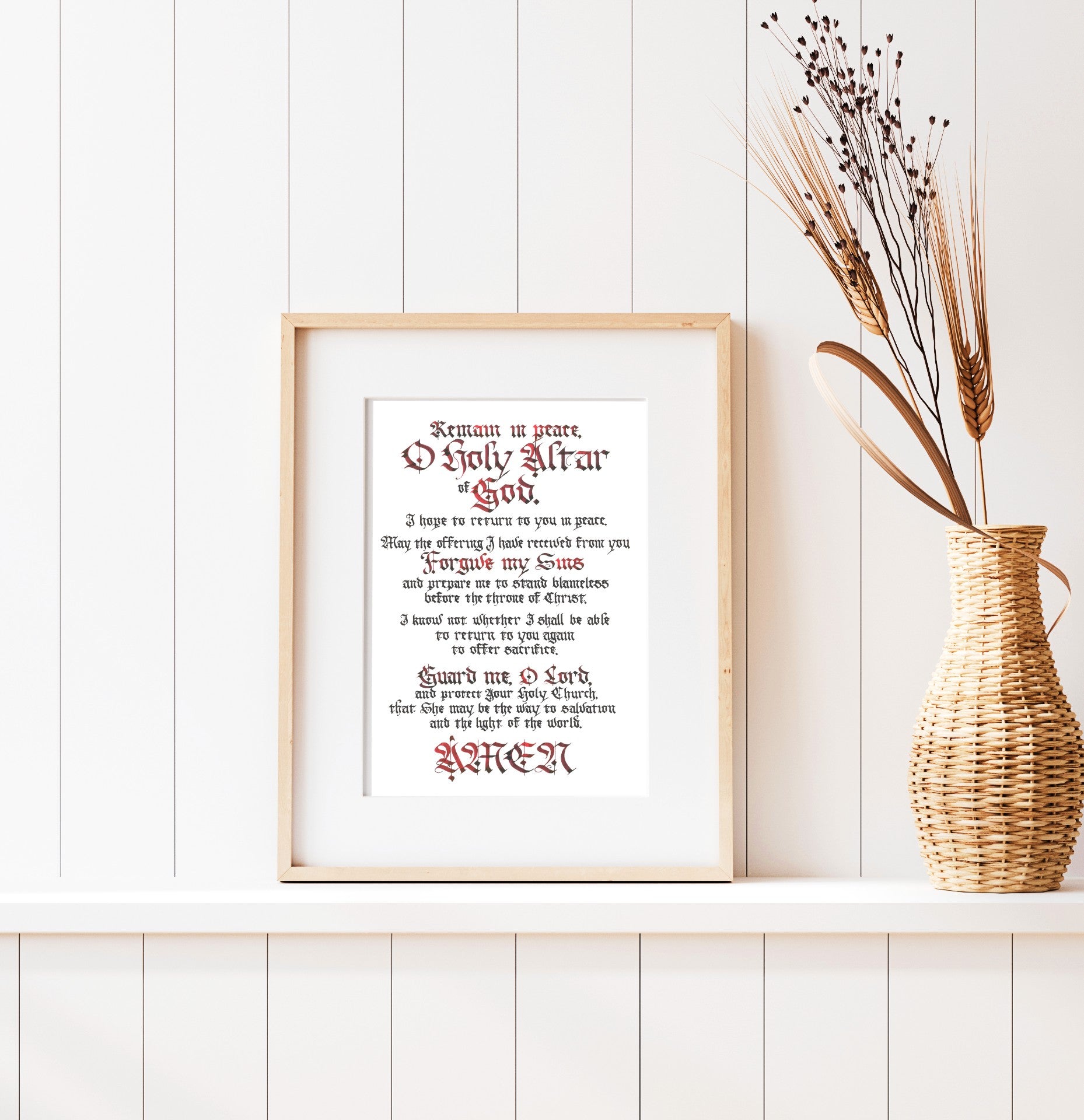 'Remain in peace, O Holy Altar of God. I hope to return to you in peace. May the offering I have received from you forgive my sins and prepare me to stand blameless before the throne of Christ. I know not whether I shall be able to return to you again to offer sacrifice. Guard me, O Lord, and prepare Your Holy Church, that She may be the way to salvation and the light of the world. Amen.'
