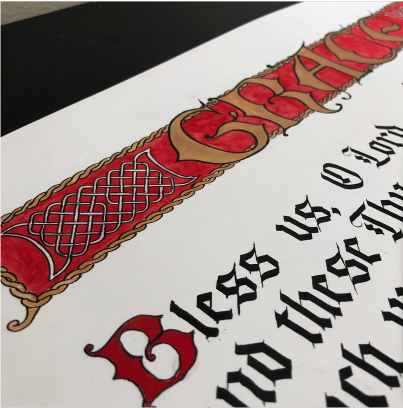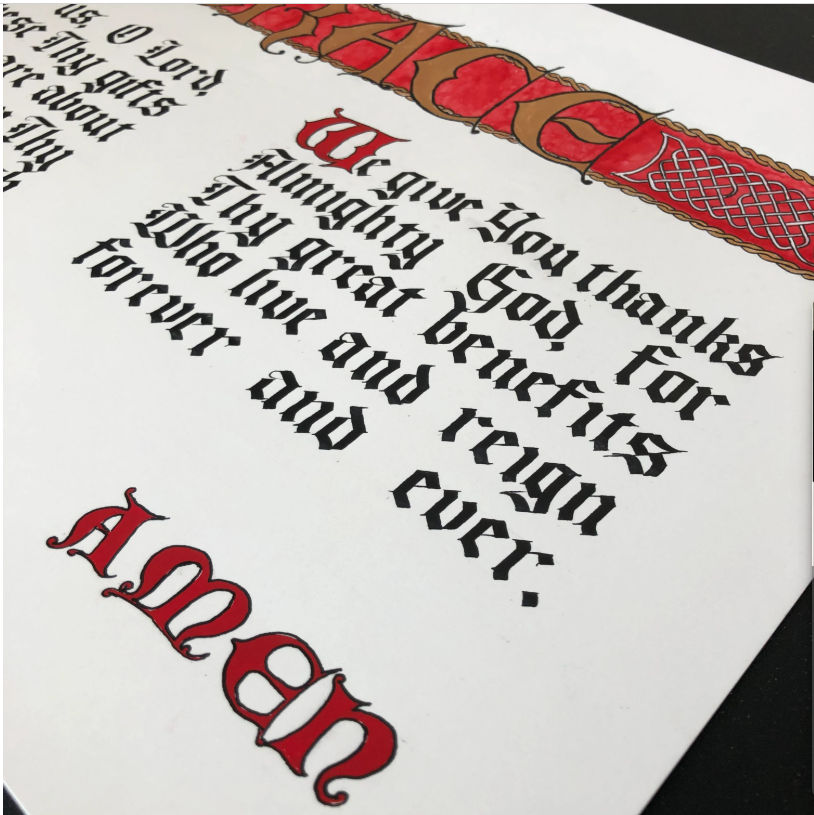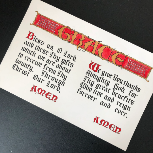 A high-quality printed copy of my original design, “Grace” - perfect to display in your dining room or kitchen as a reminder to pray before AND after your meals, thanking the Lord for his gifts.