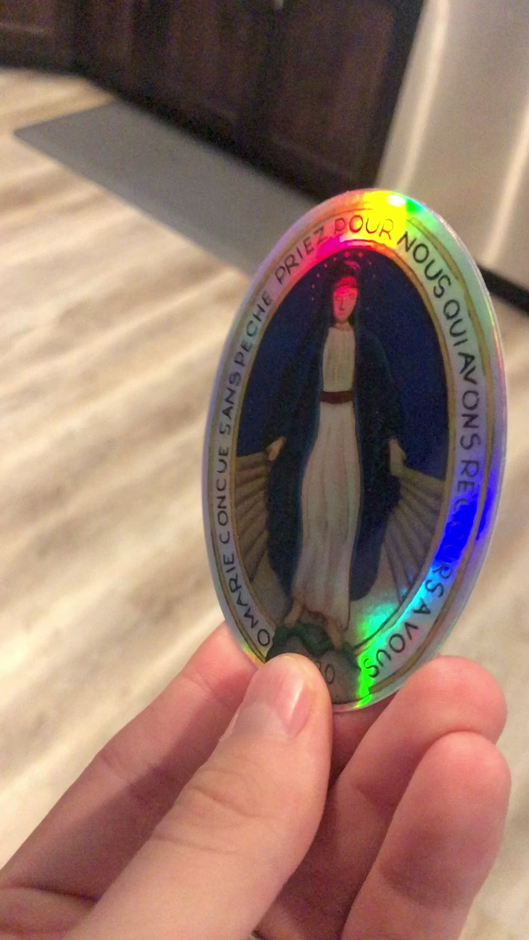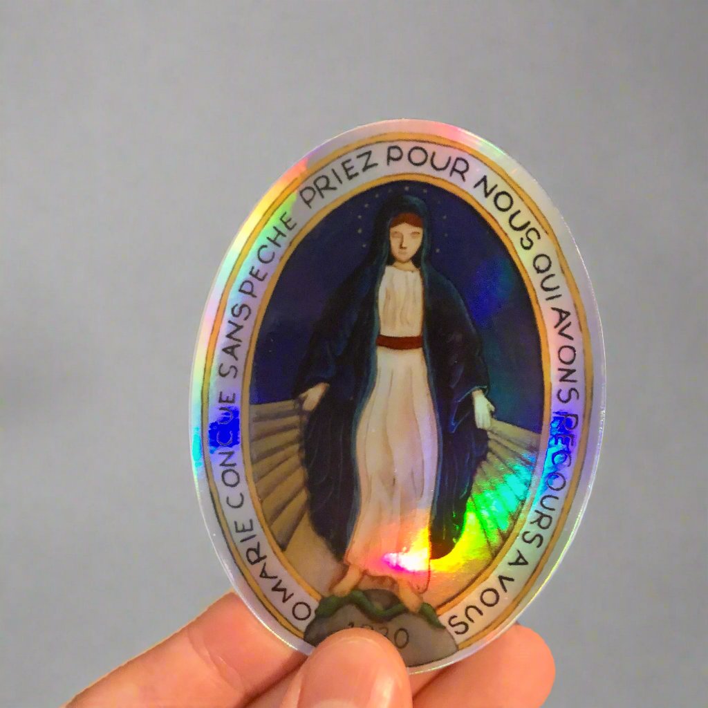 A beautiful, colorful rendition of the Miraculous Medal - back only - on a holographic sticker! Use these to turn anything - your water bottle, laptop, etc. - into a Miraculous Medal. O Mary, Conceived without sin, pray for us who have recourse to thee!