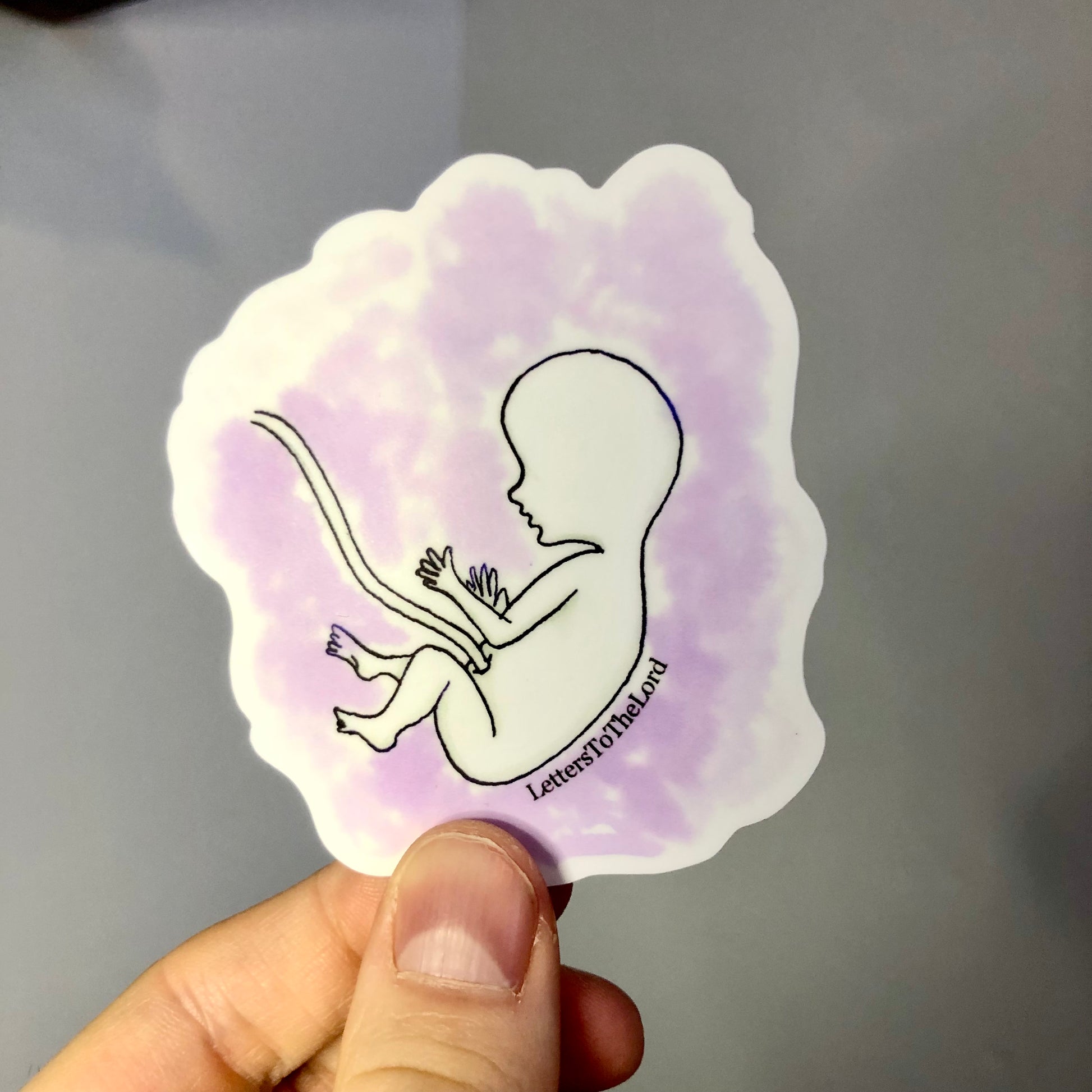 Protect and profess the sanctity of life with this sticker, "Safe and Sound". Depicting an unborn baby in the womb, this sticker is a tangible reminder of the importance of protecting the most vulnerable among us. Display it proudly and spread the message of life.
