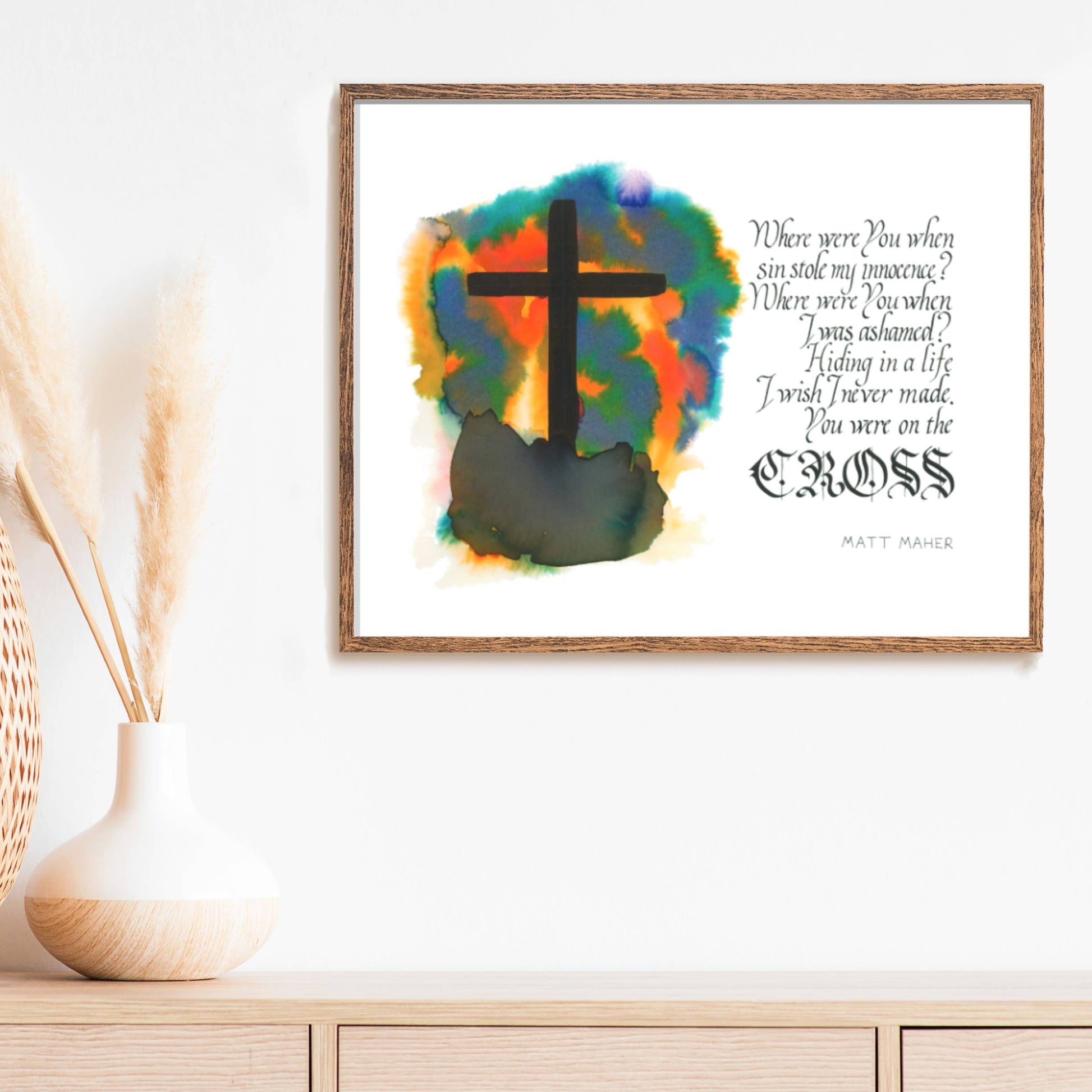 Immerse yourself in the poignant lyrics of Matt Maher's song with our "You Were On The Cross" Calligraphy Print. This ethereal piece captures the essence of redemption and forgiveness, serving as a gentle reminder of grace in the face of human imperfection.